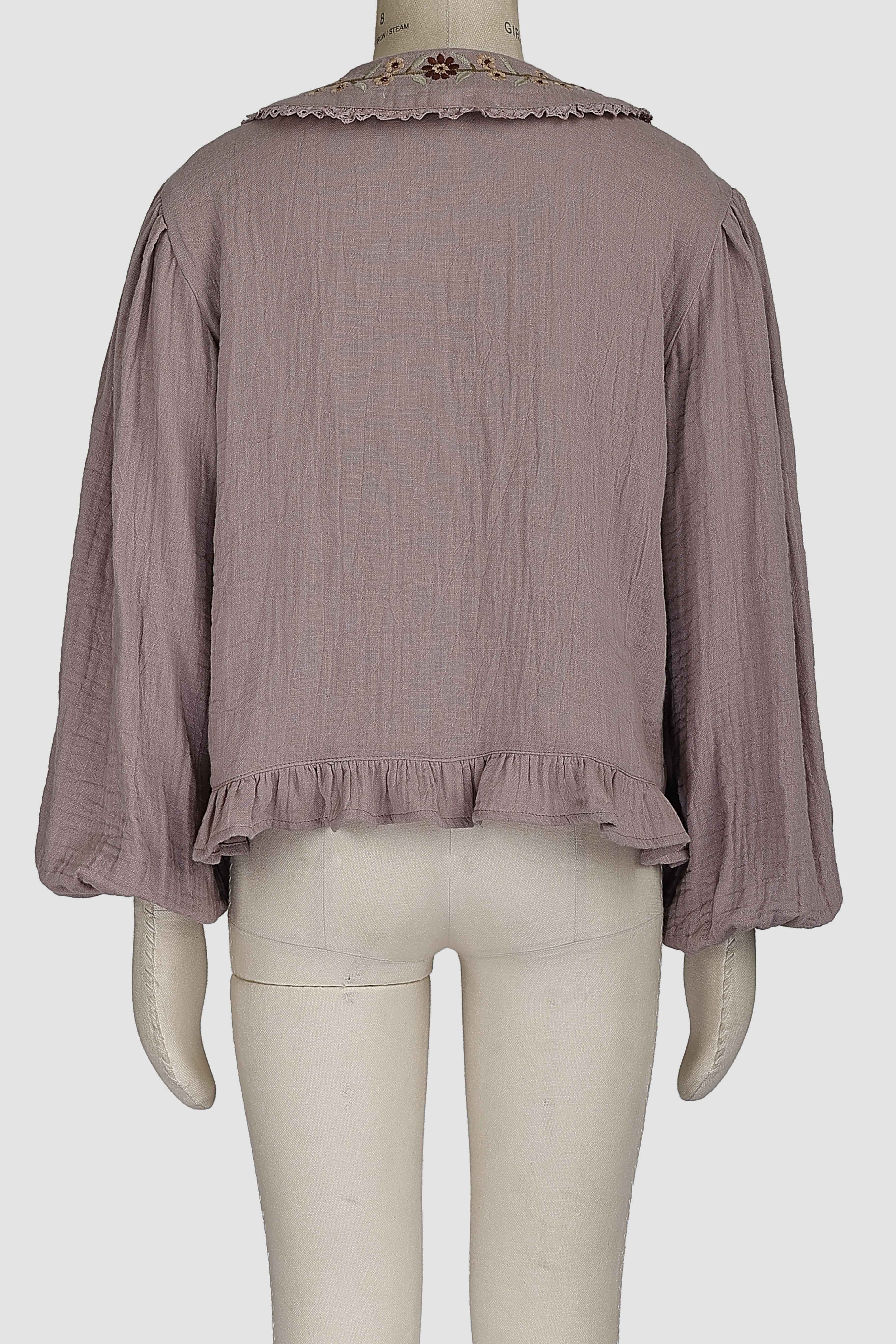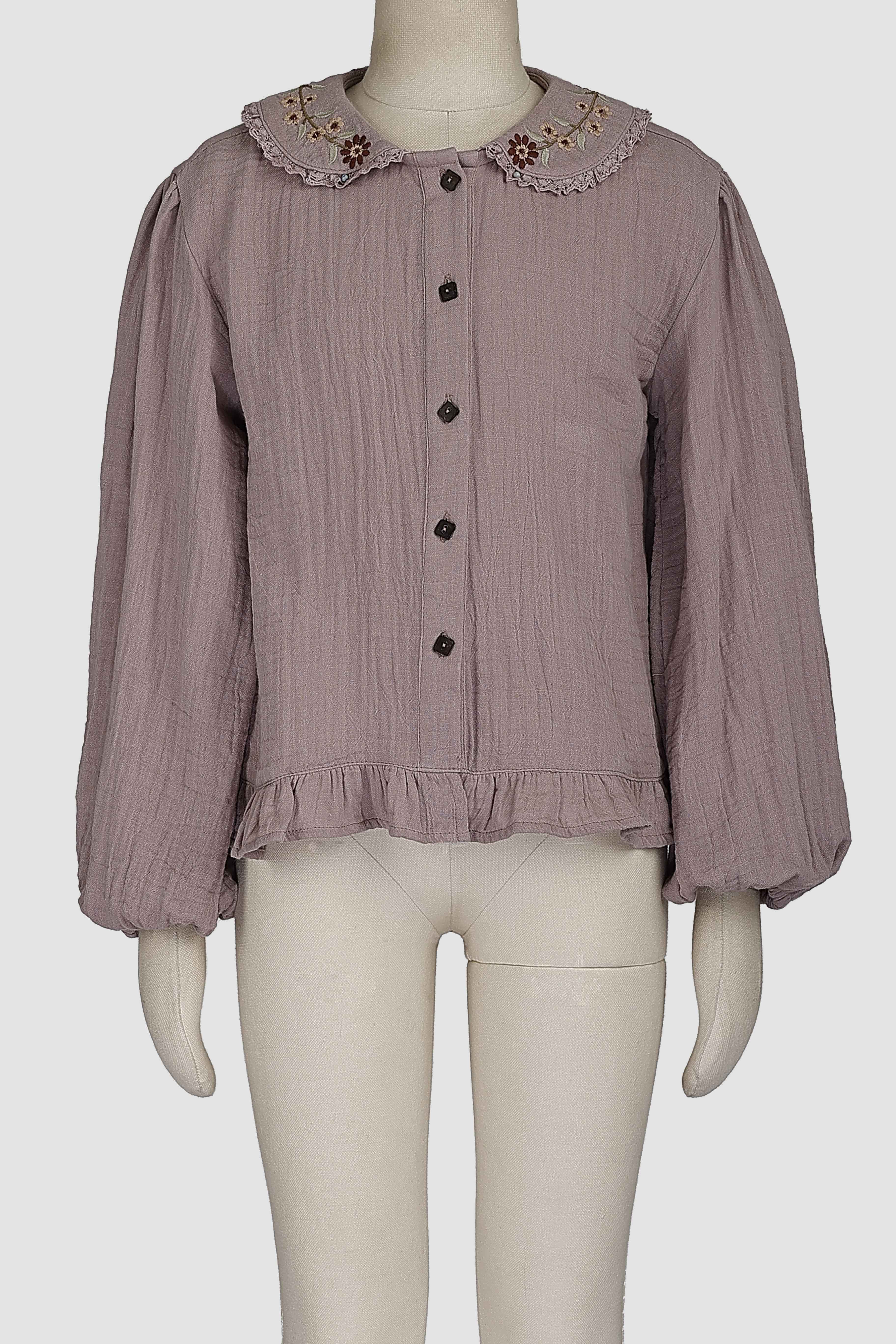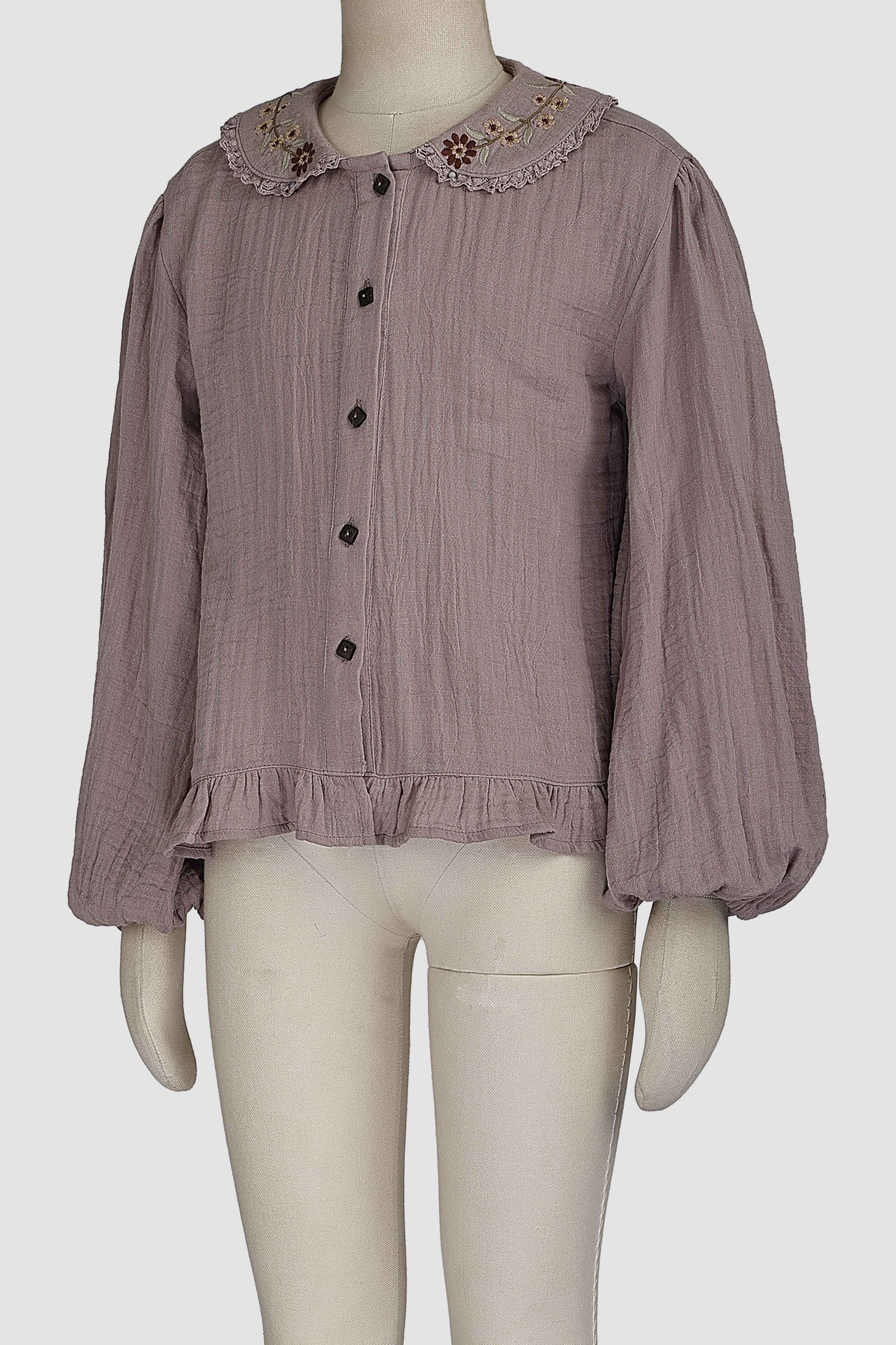 BALLOON SLEEVE BLOUSE WITH EMBROIDERED COLLAR