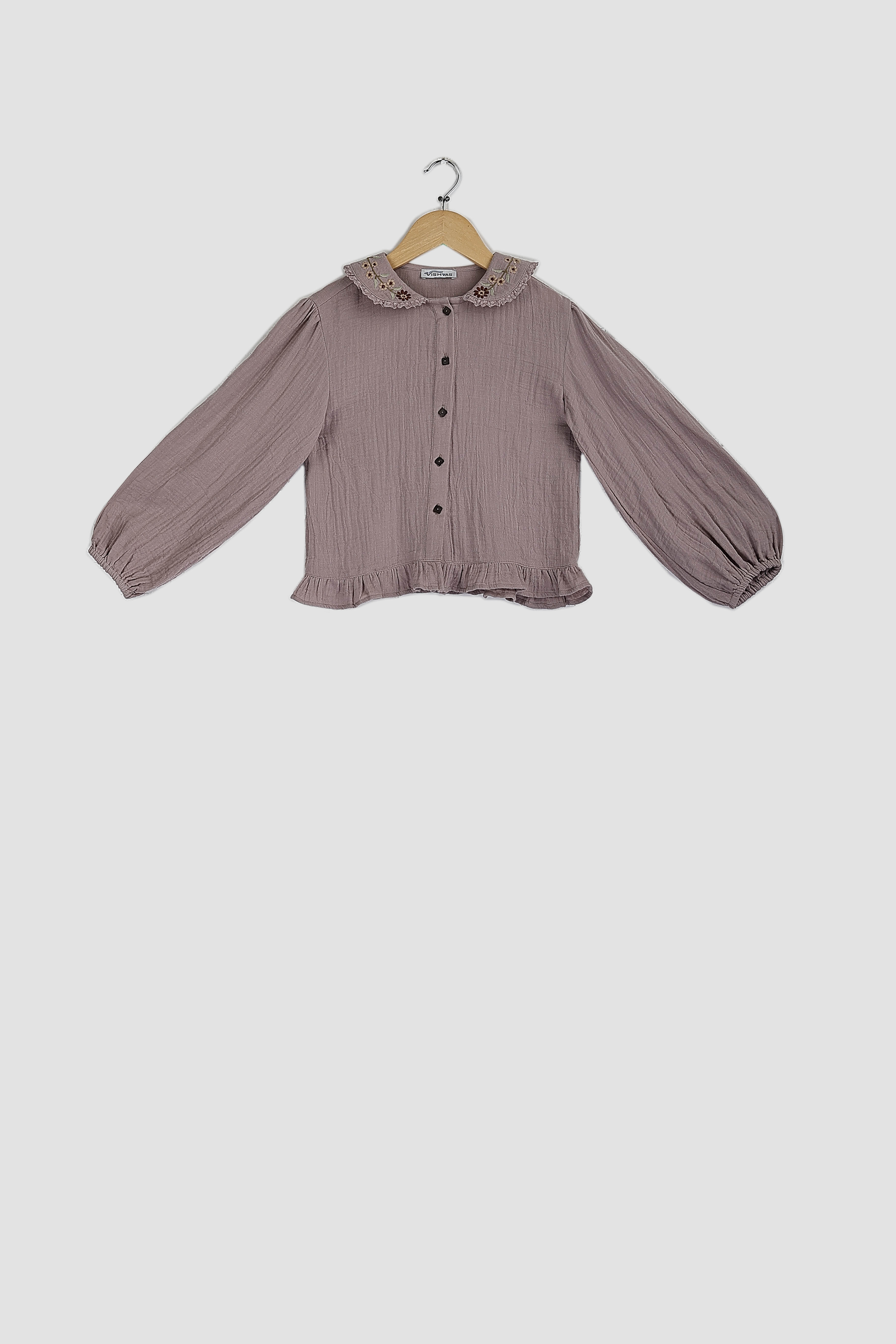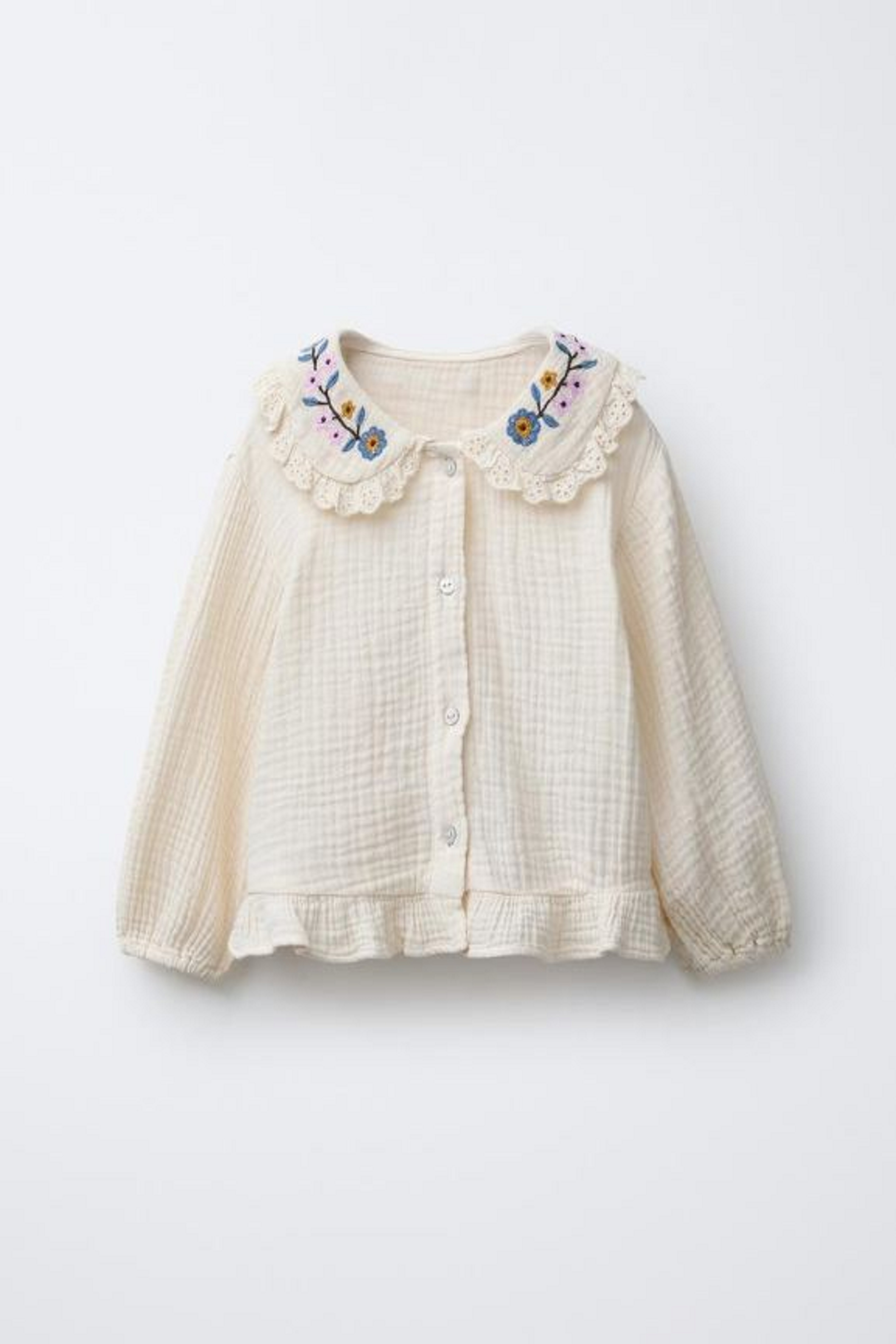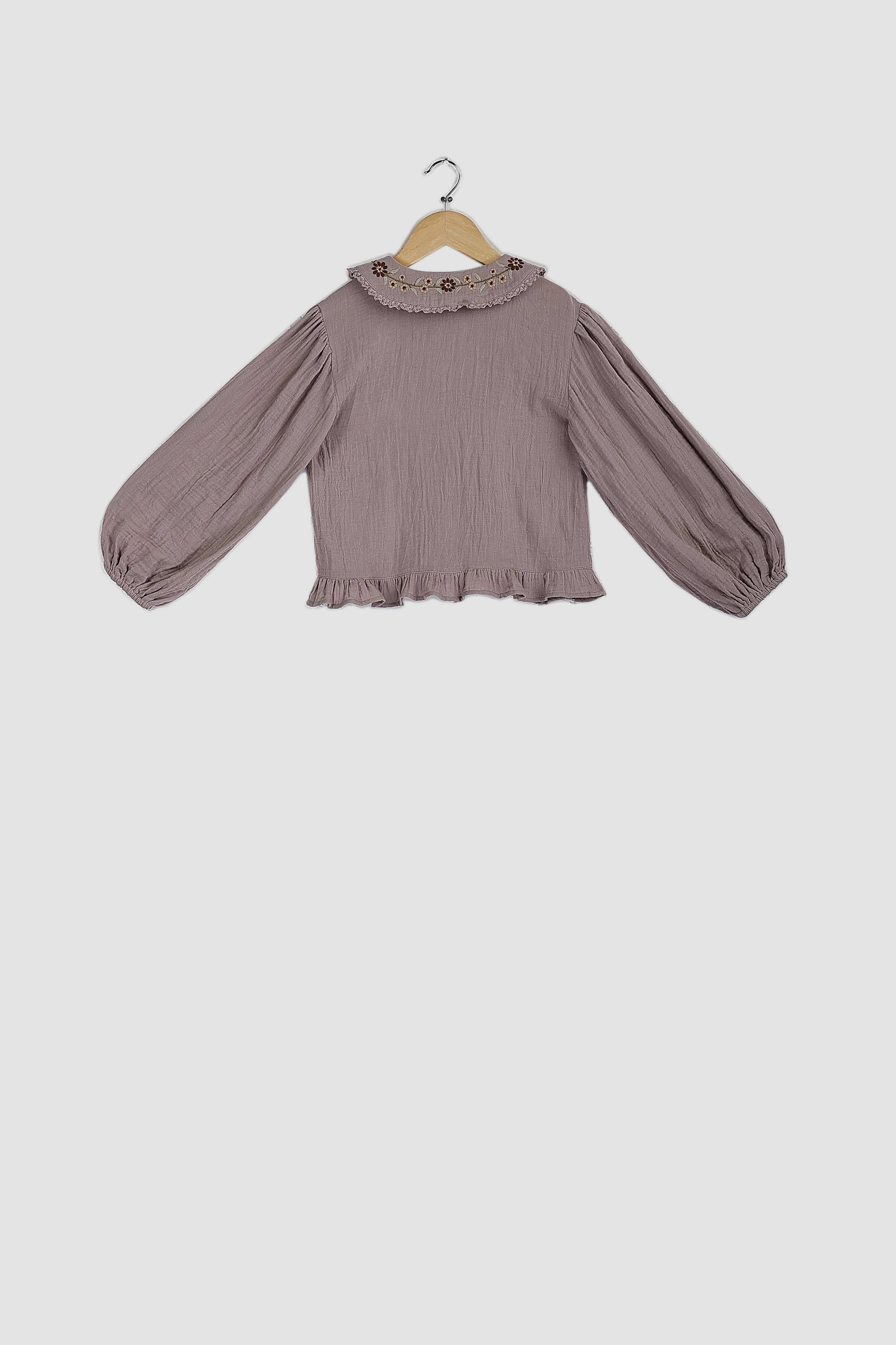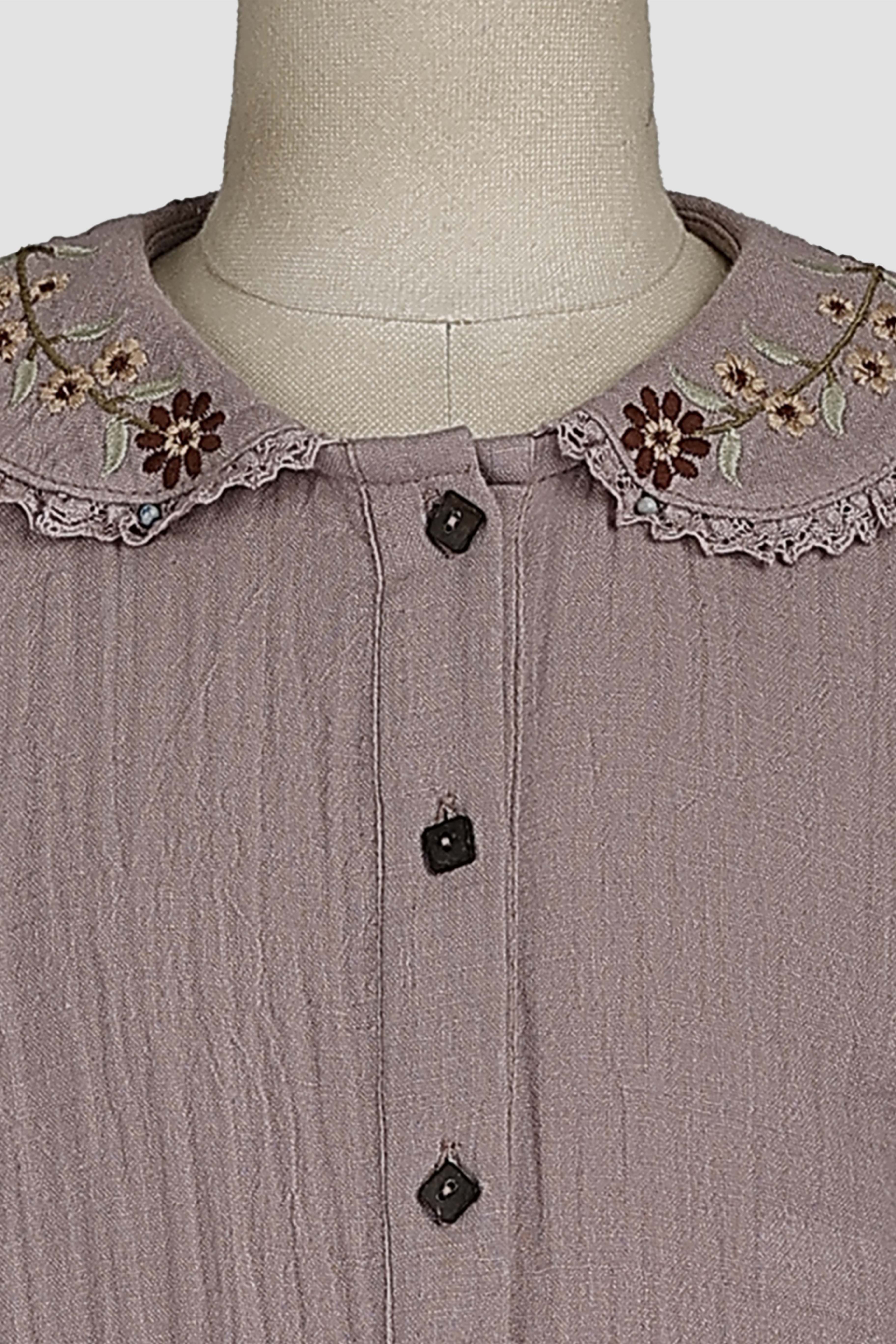 BALLOON SLEEVE BLOUSE WITH EMBROIDERED COLLAR