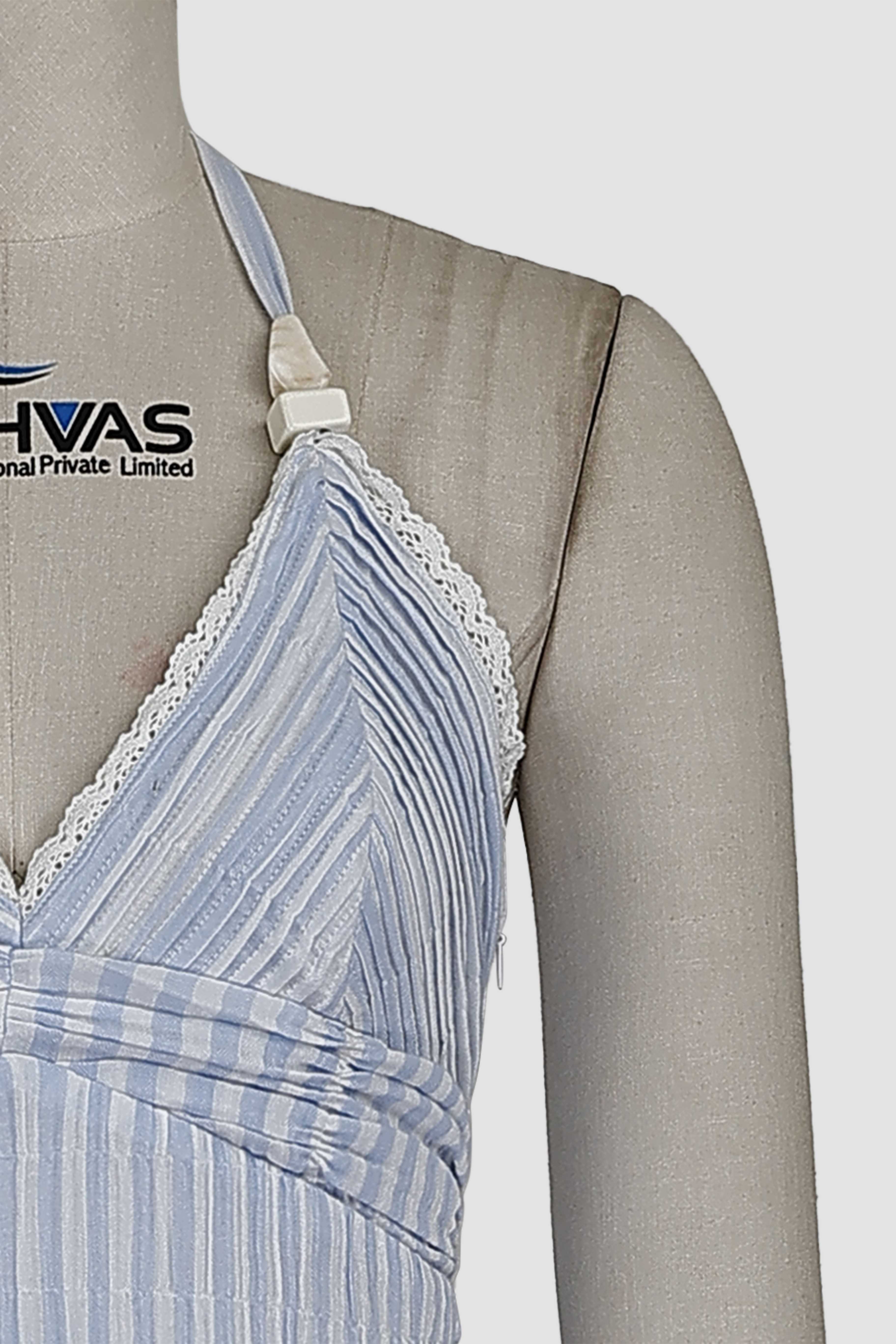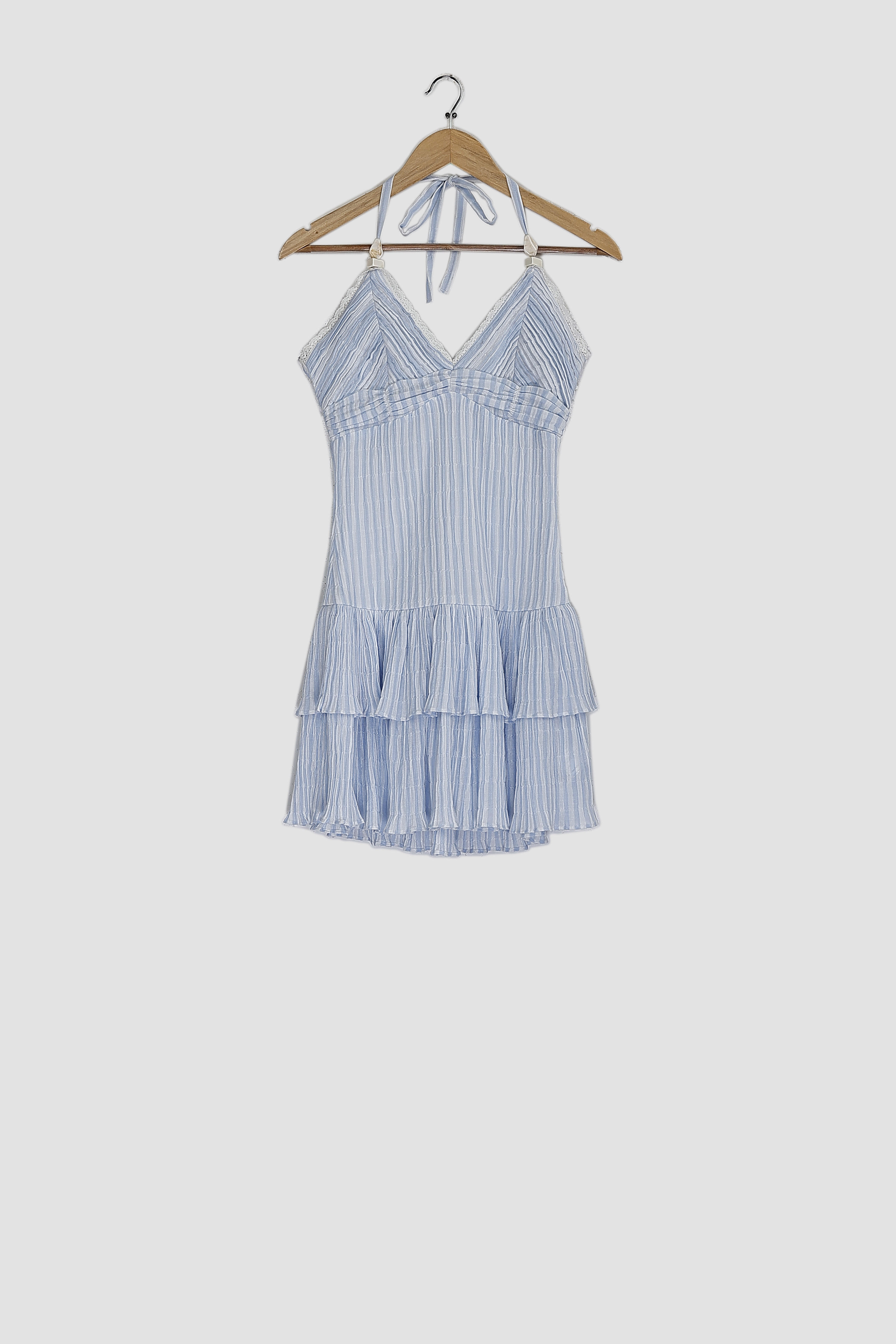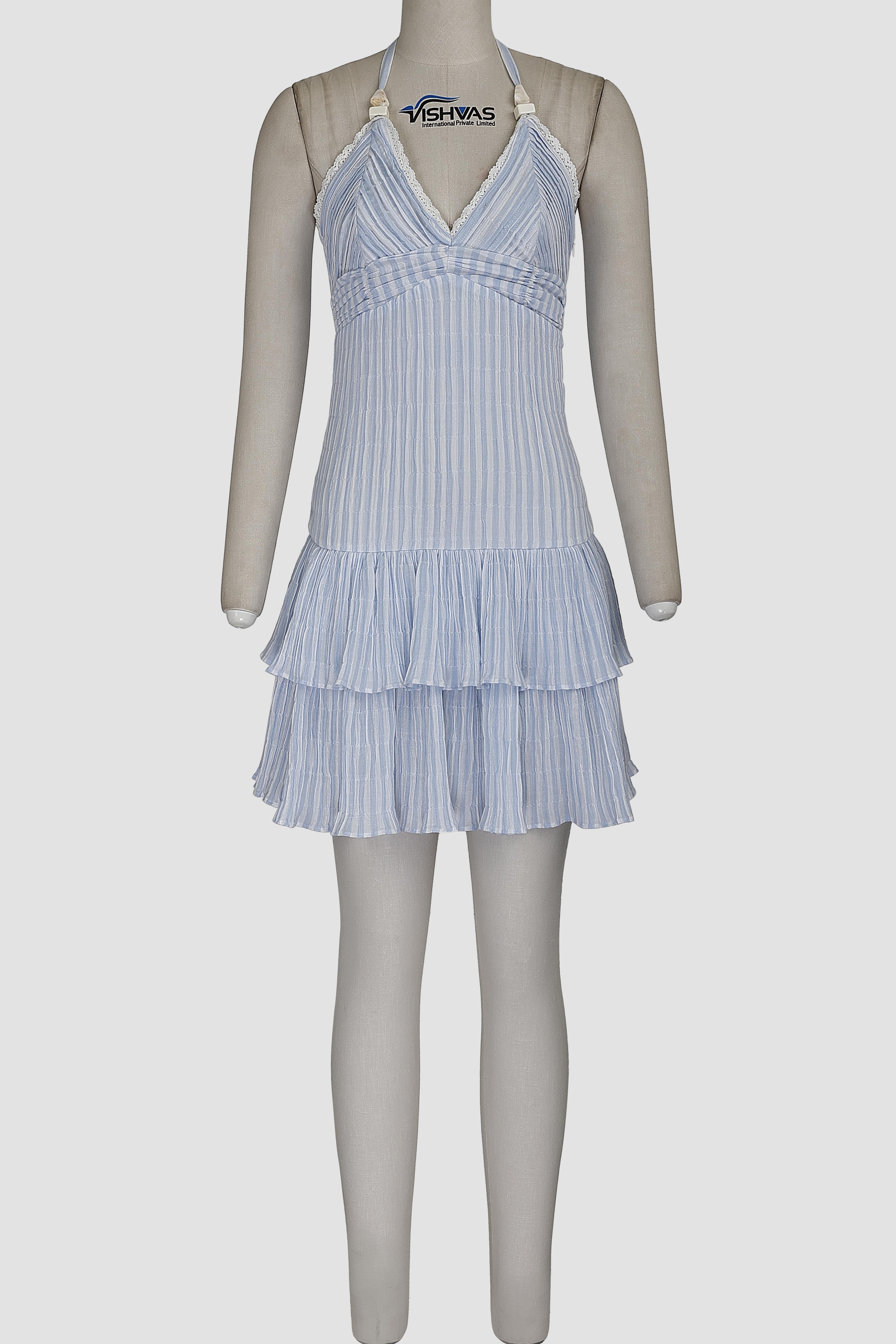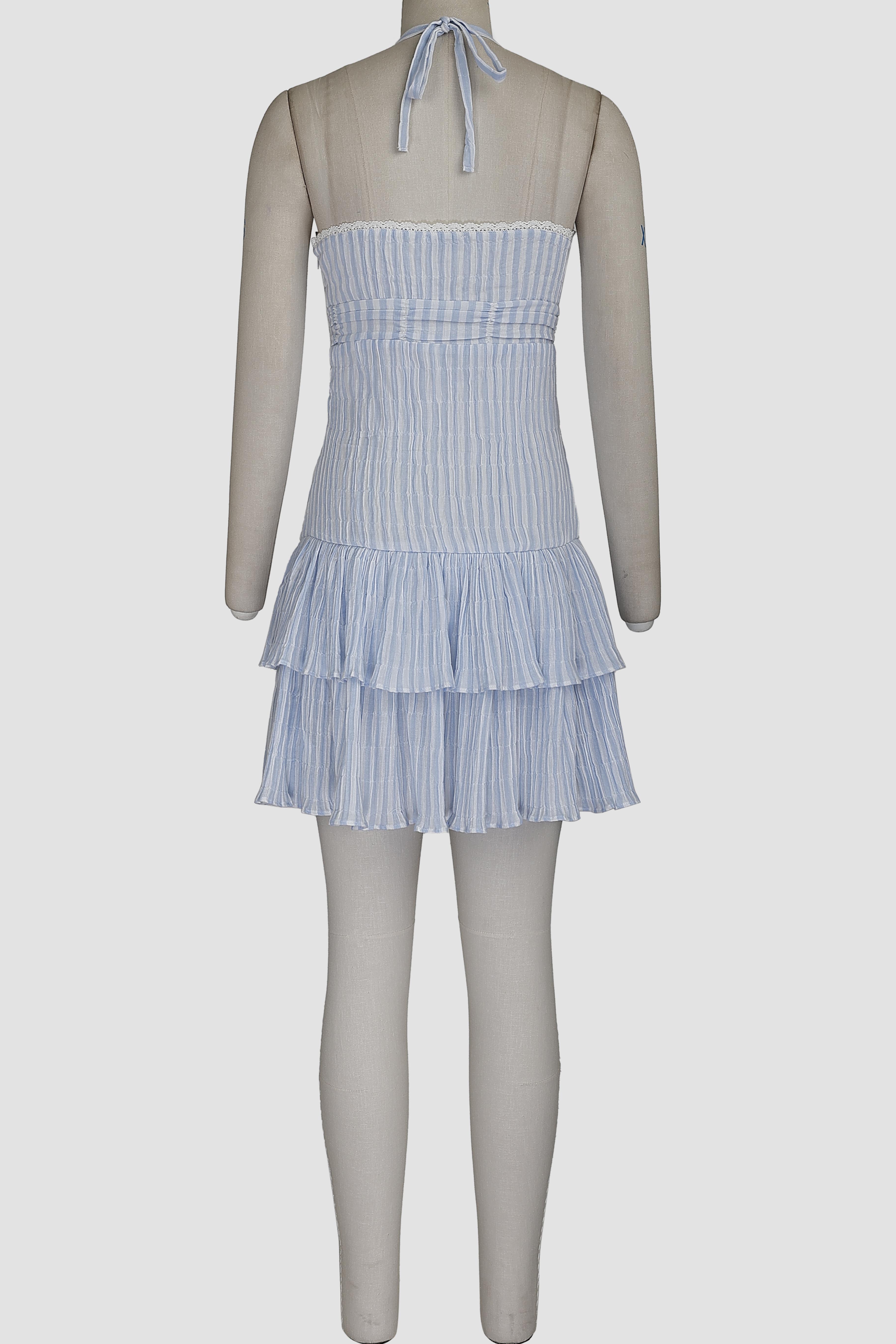 cotton yarn dyed stripe pin tuck scallop lace detailed short tiered dress