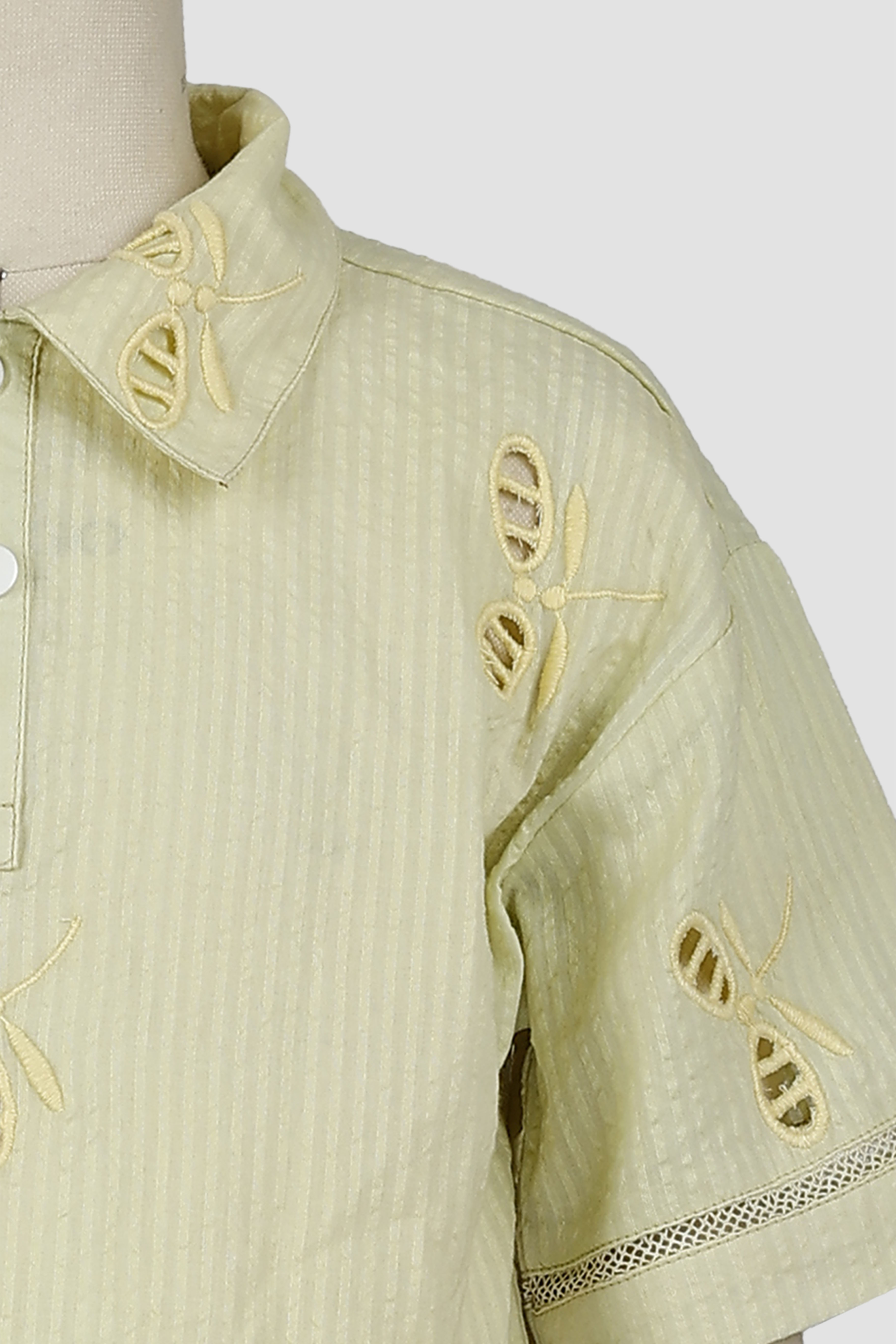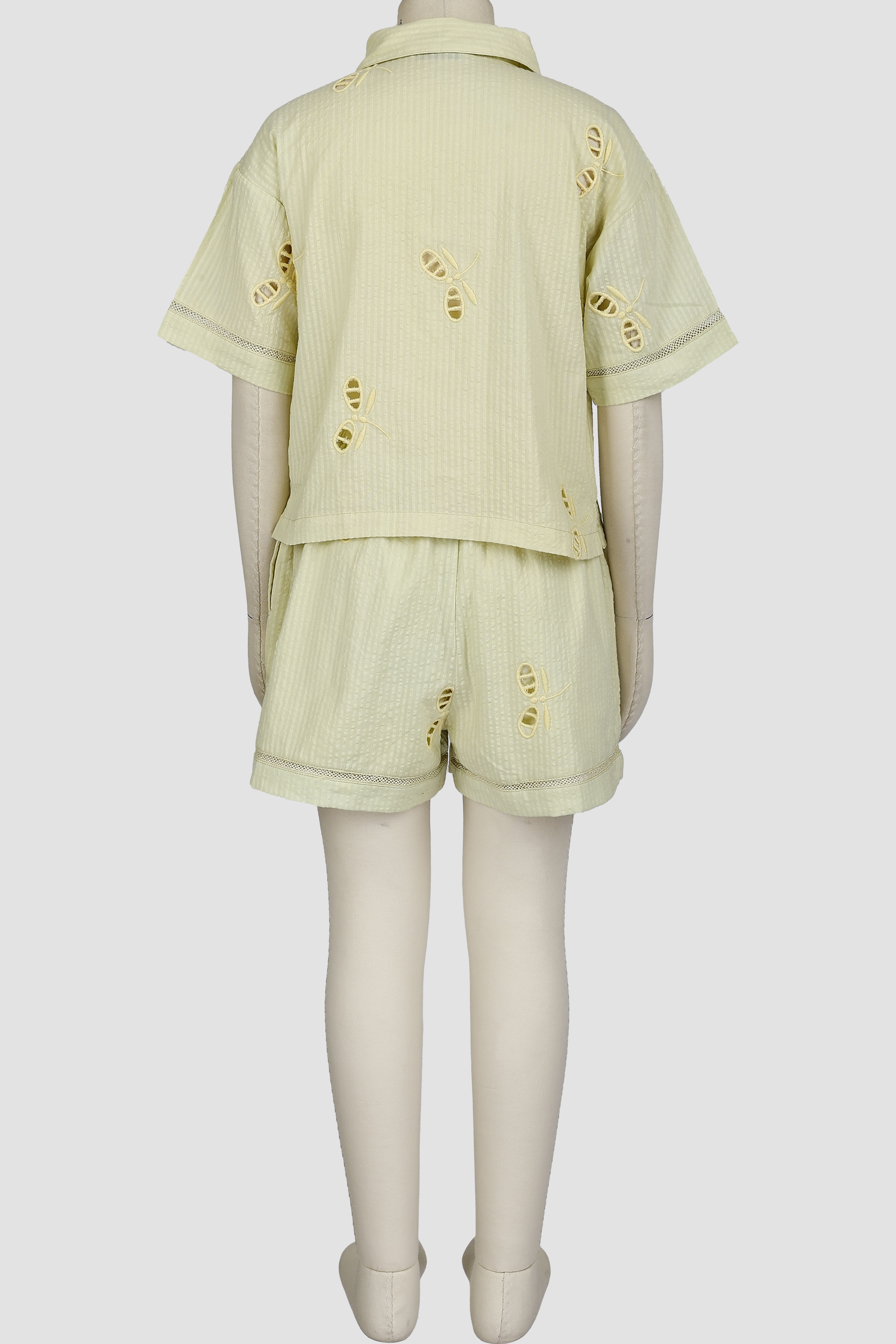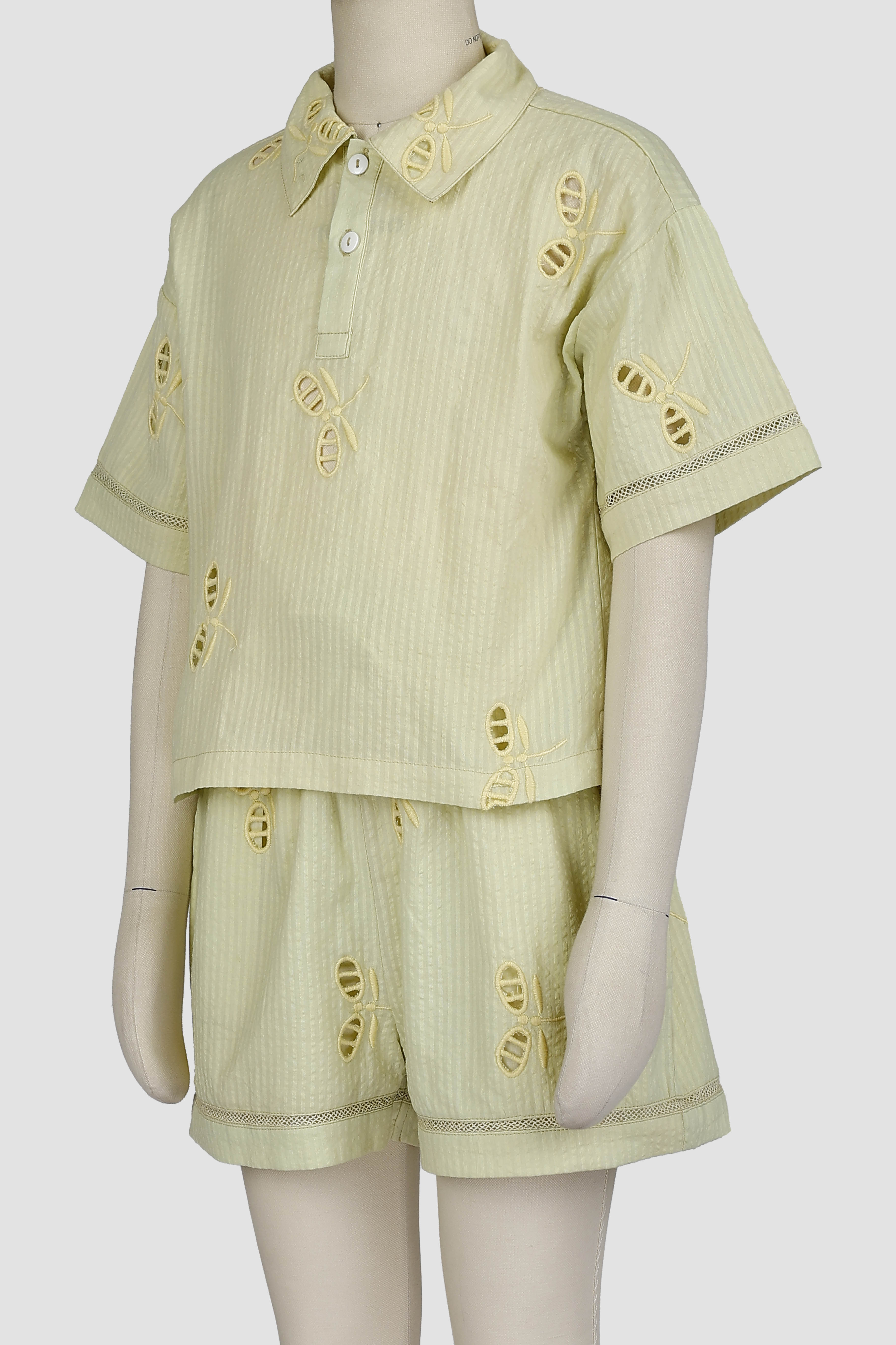 CUTWORK DRAGON EMBROIDERED SHIRT SET WITH SHORTS.