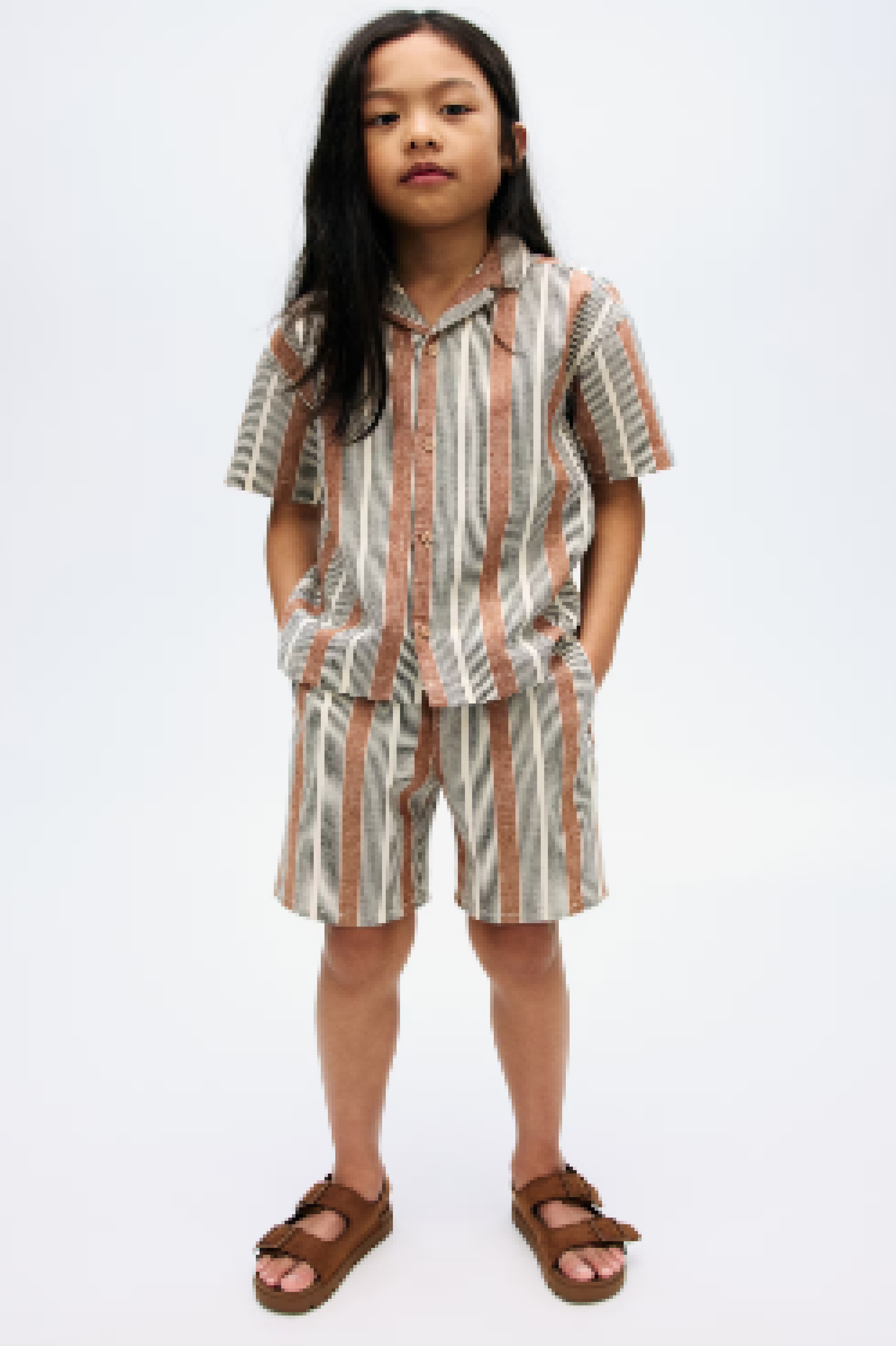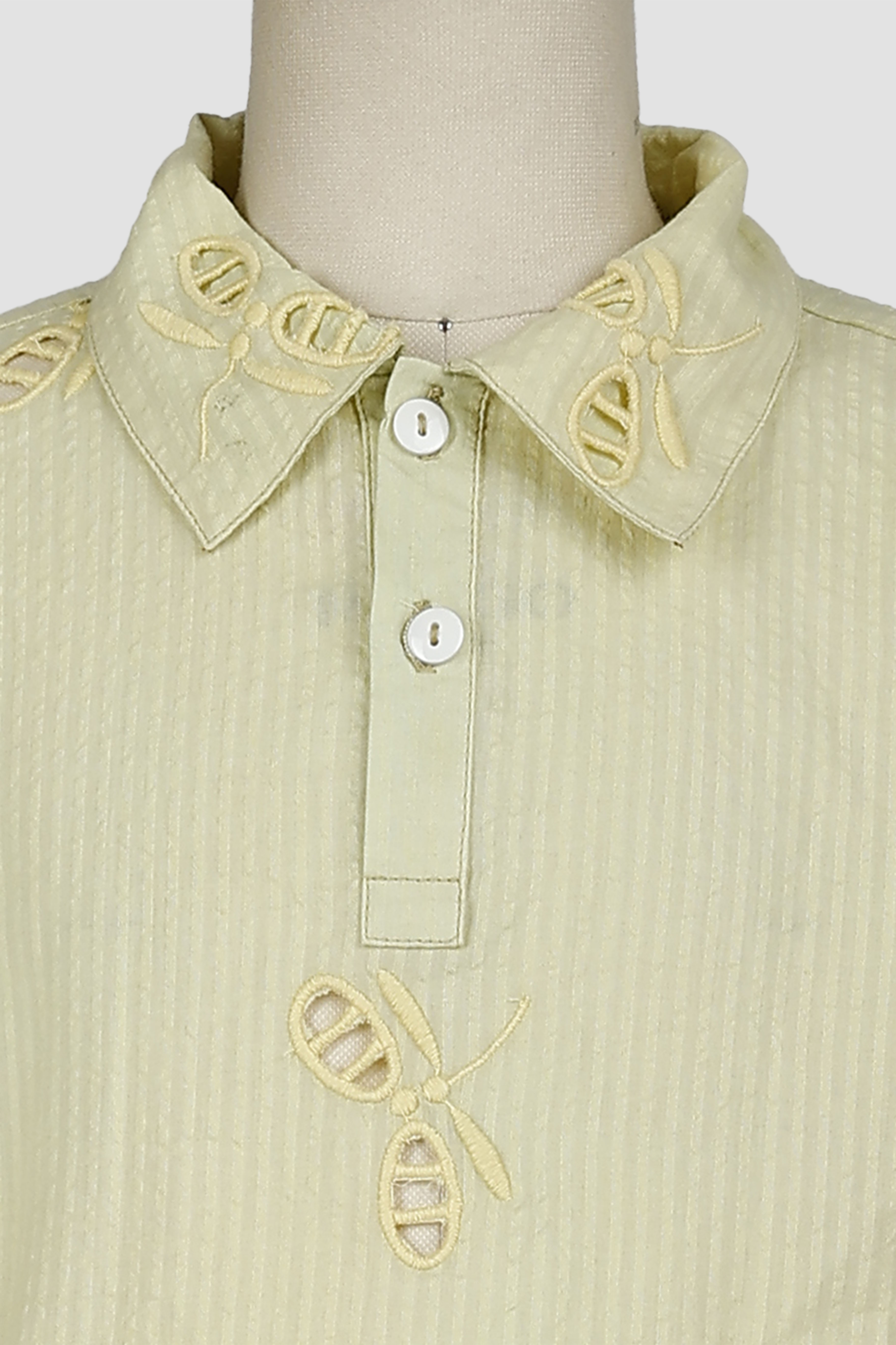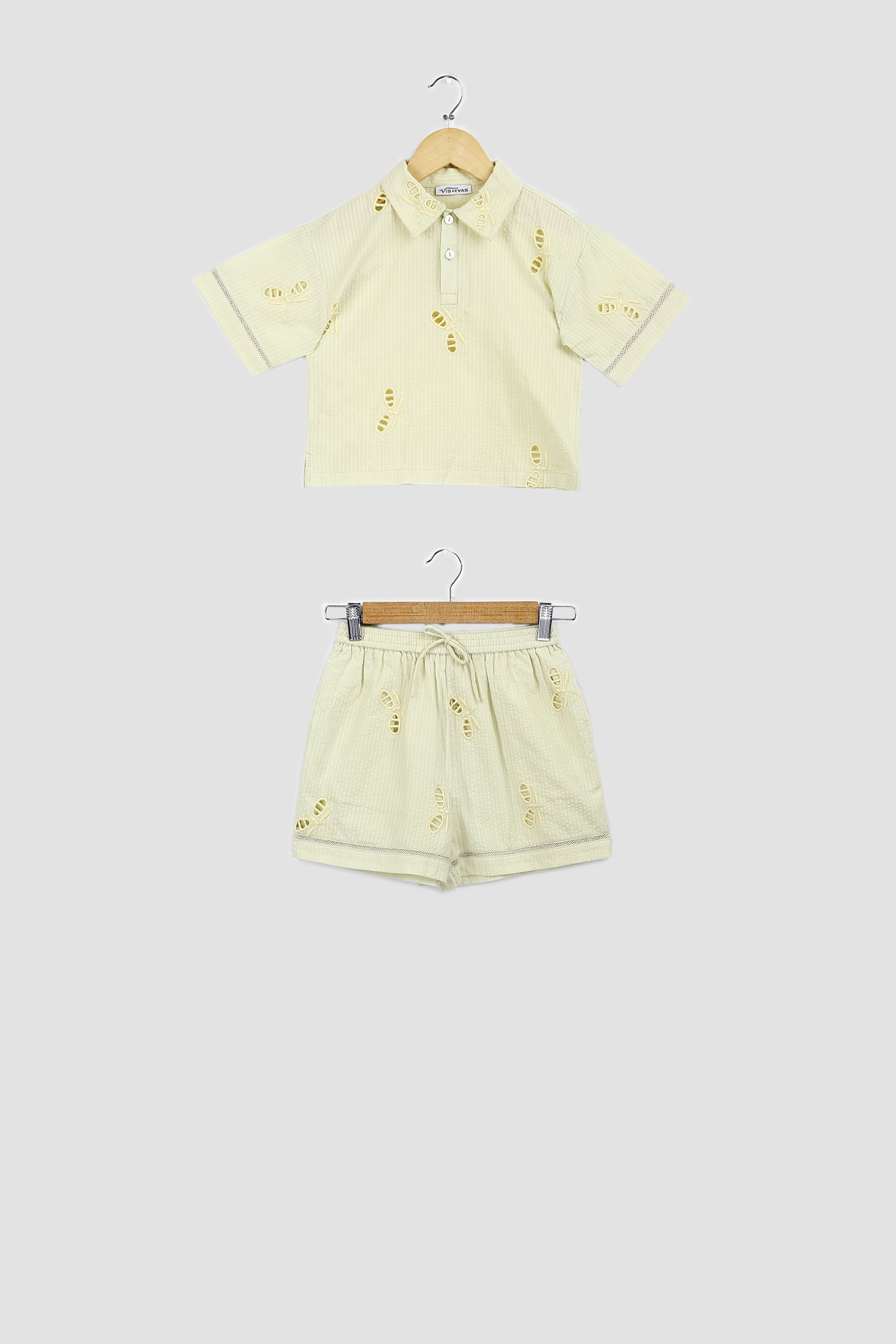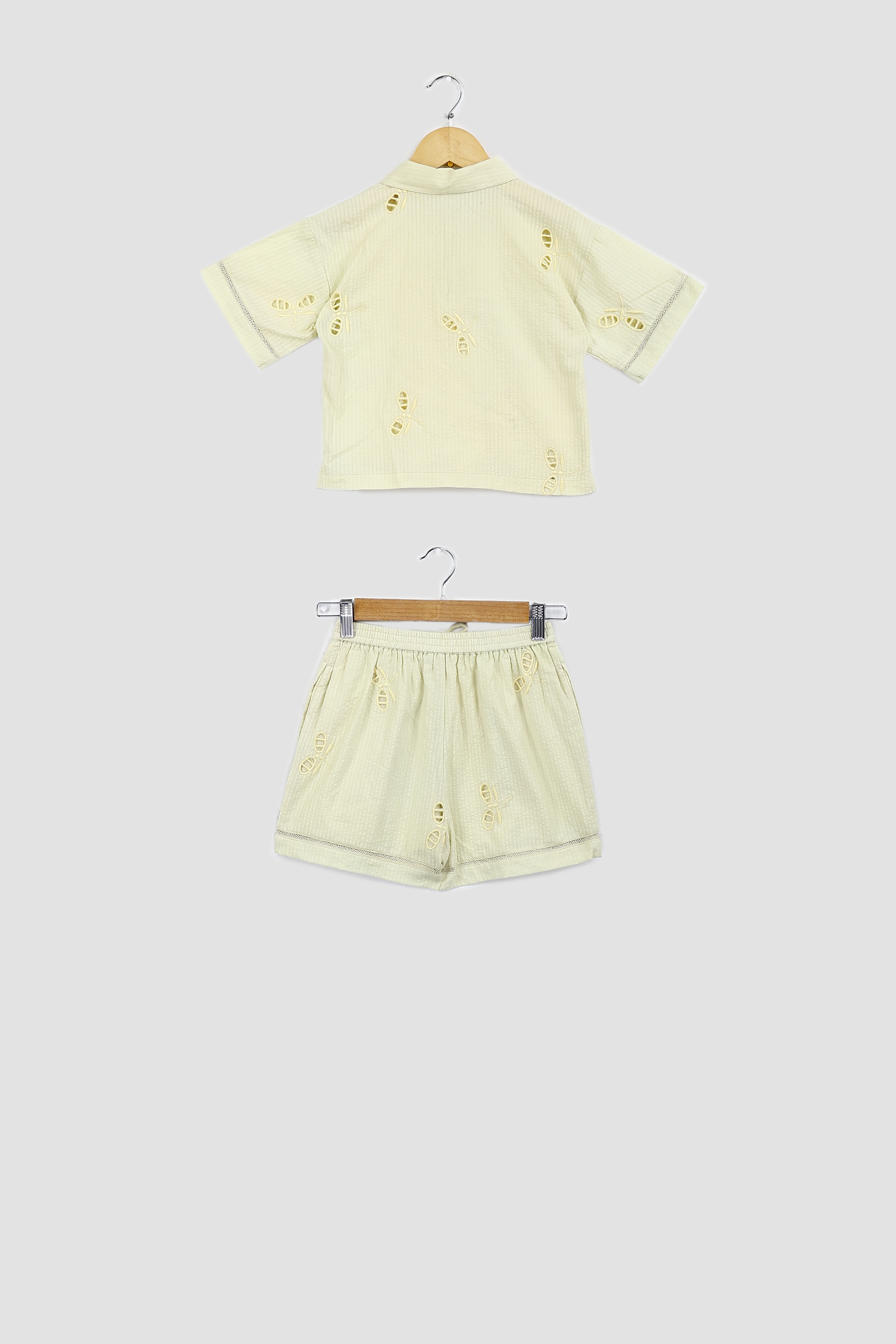 CUTWORK DRAGON EMBROIDERED SHIRT SET WITH SHORTS.