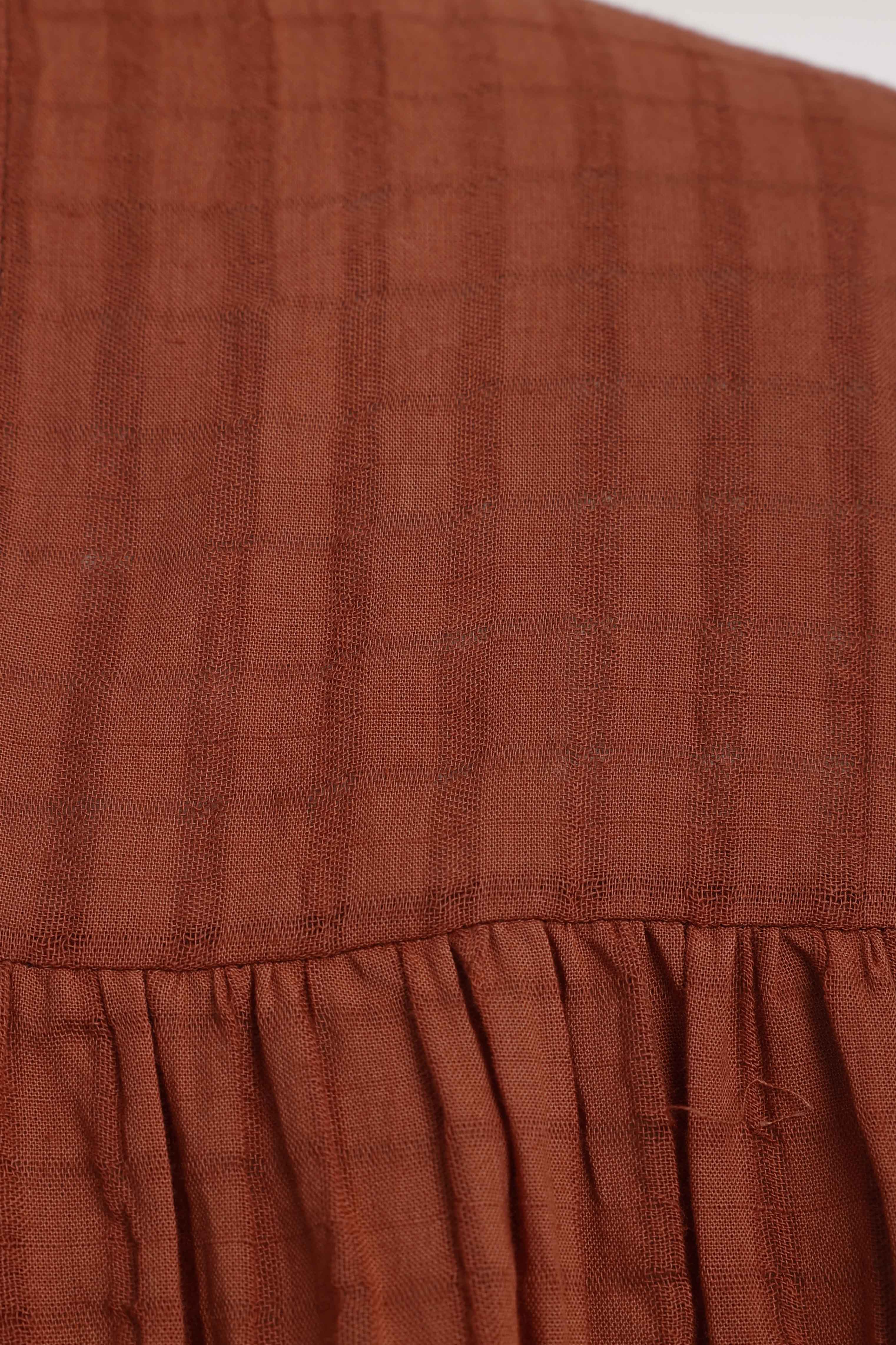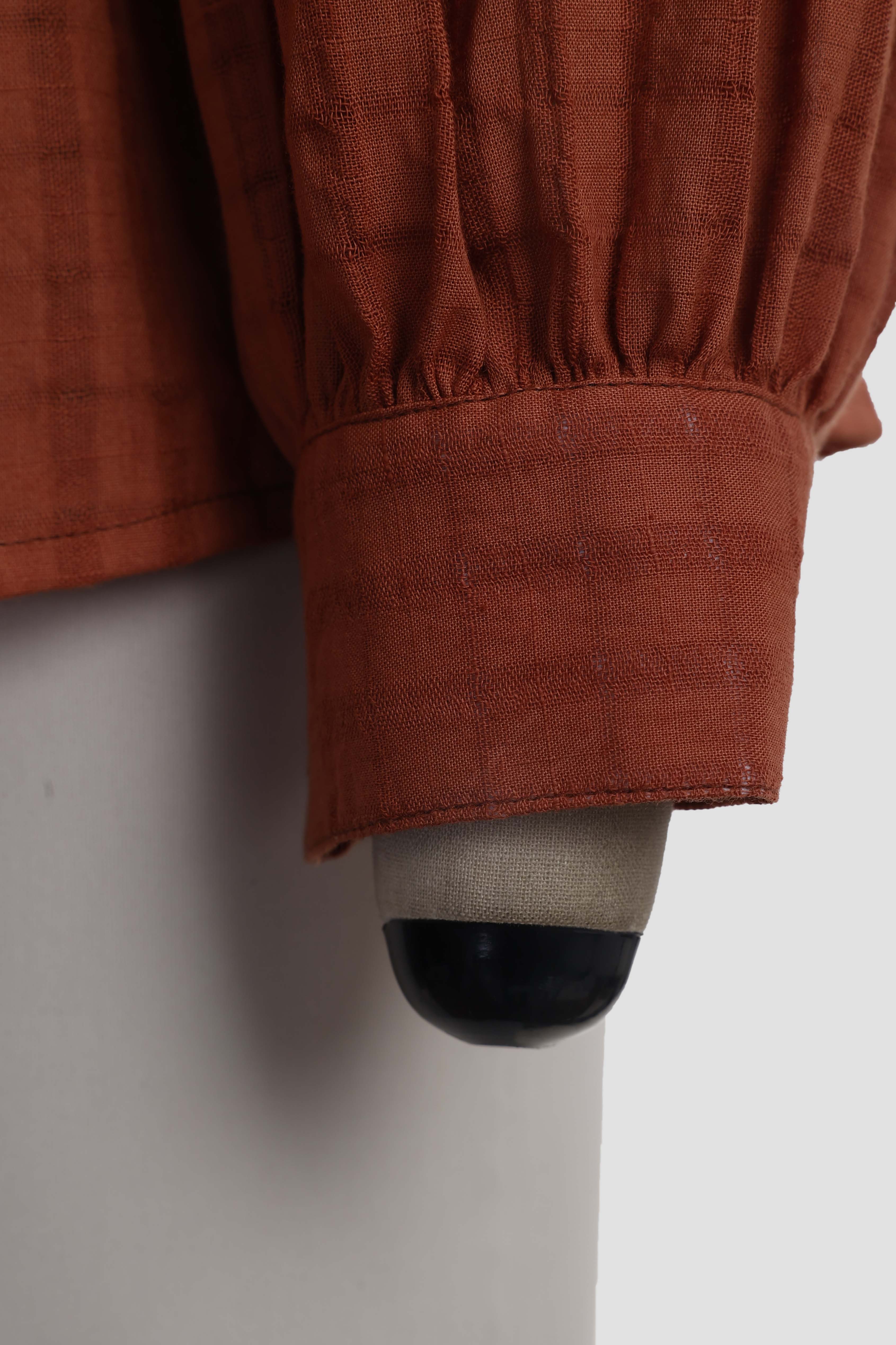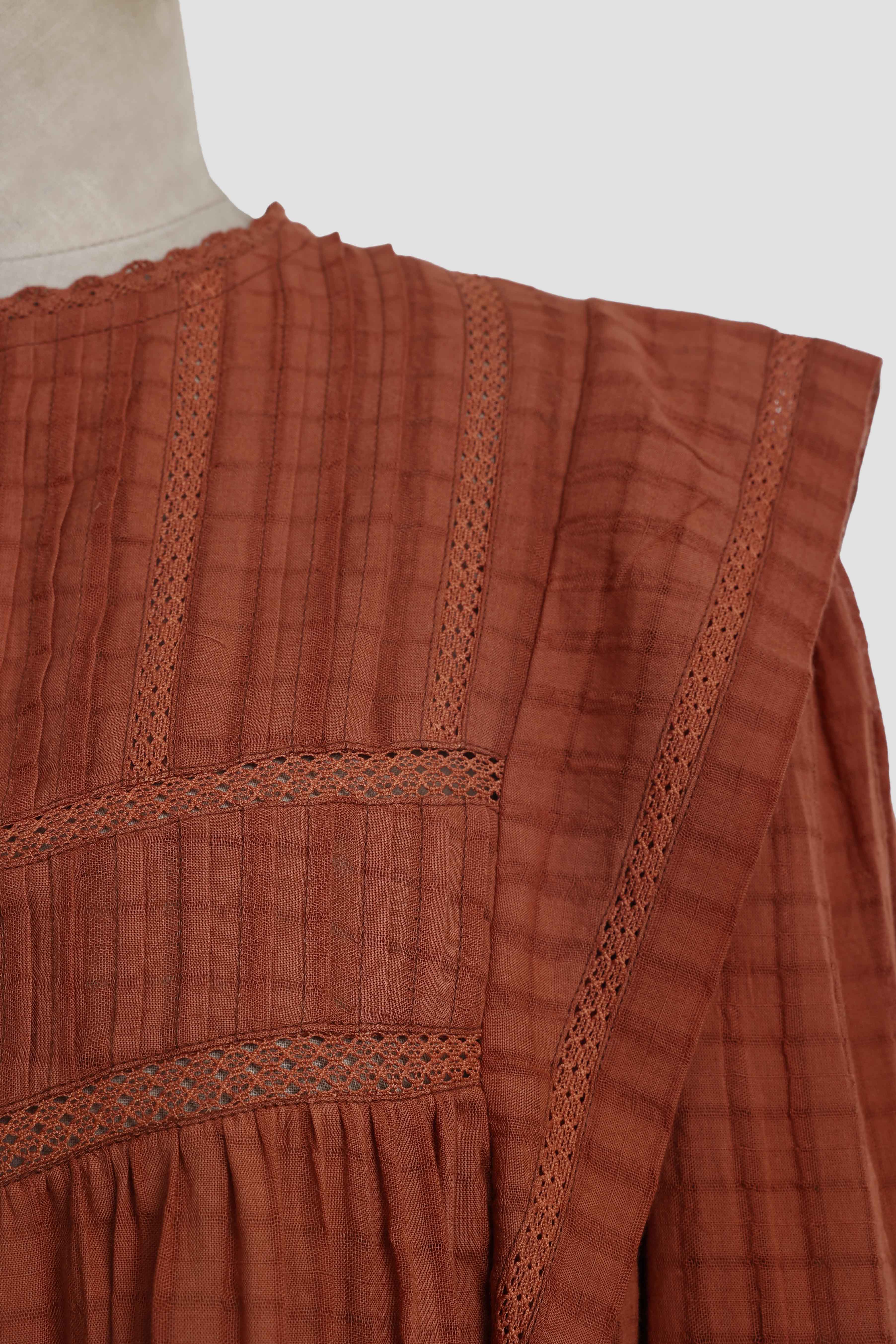 PINTUCK LACE INSERT BLOUSE WITH ROUND NECK AND GATHERS