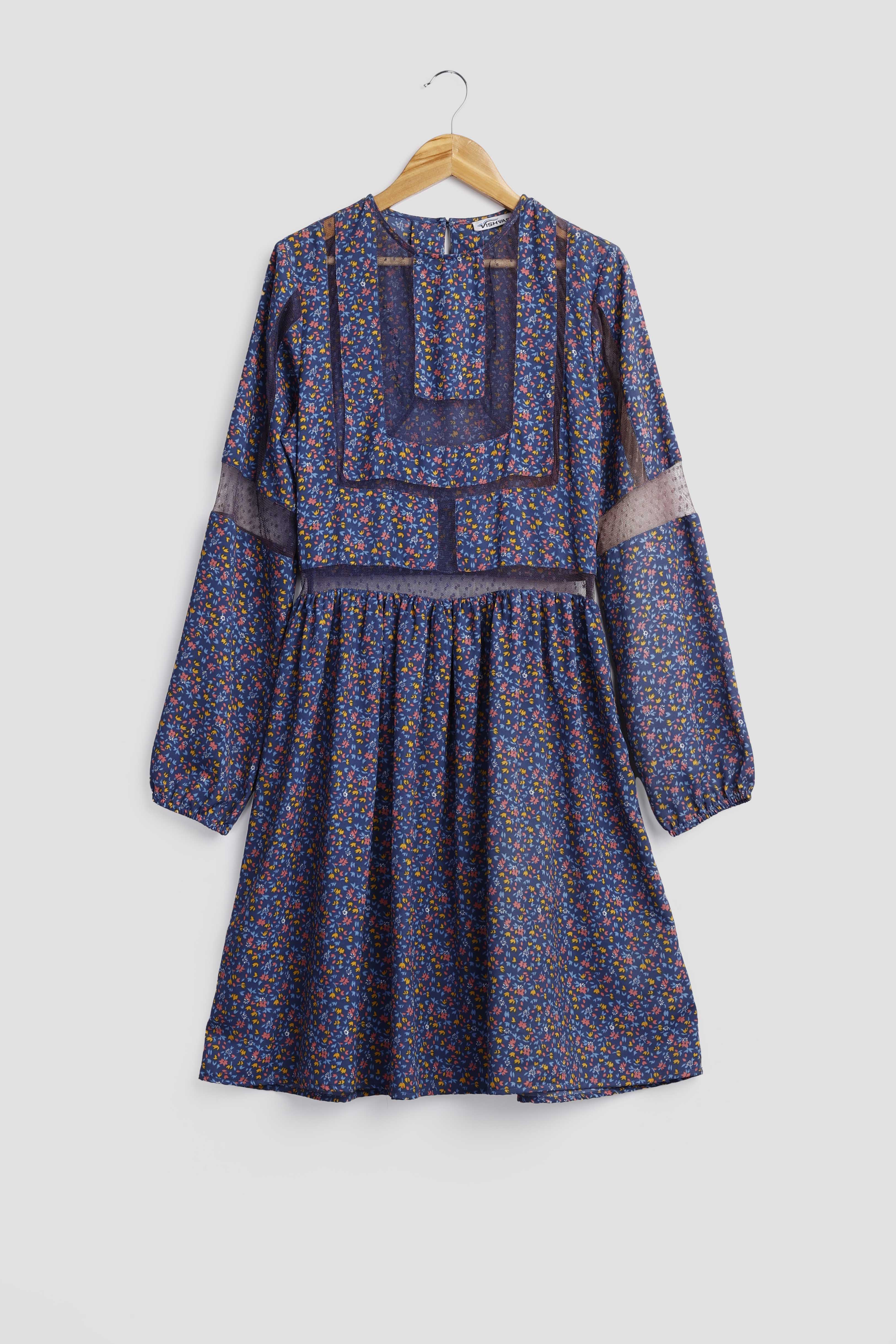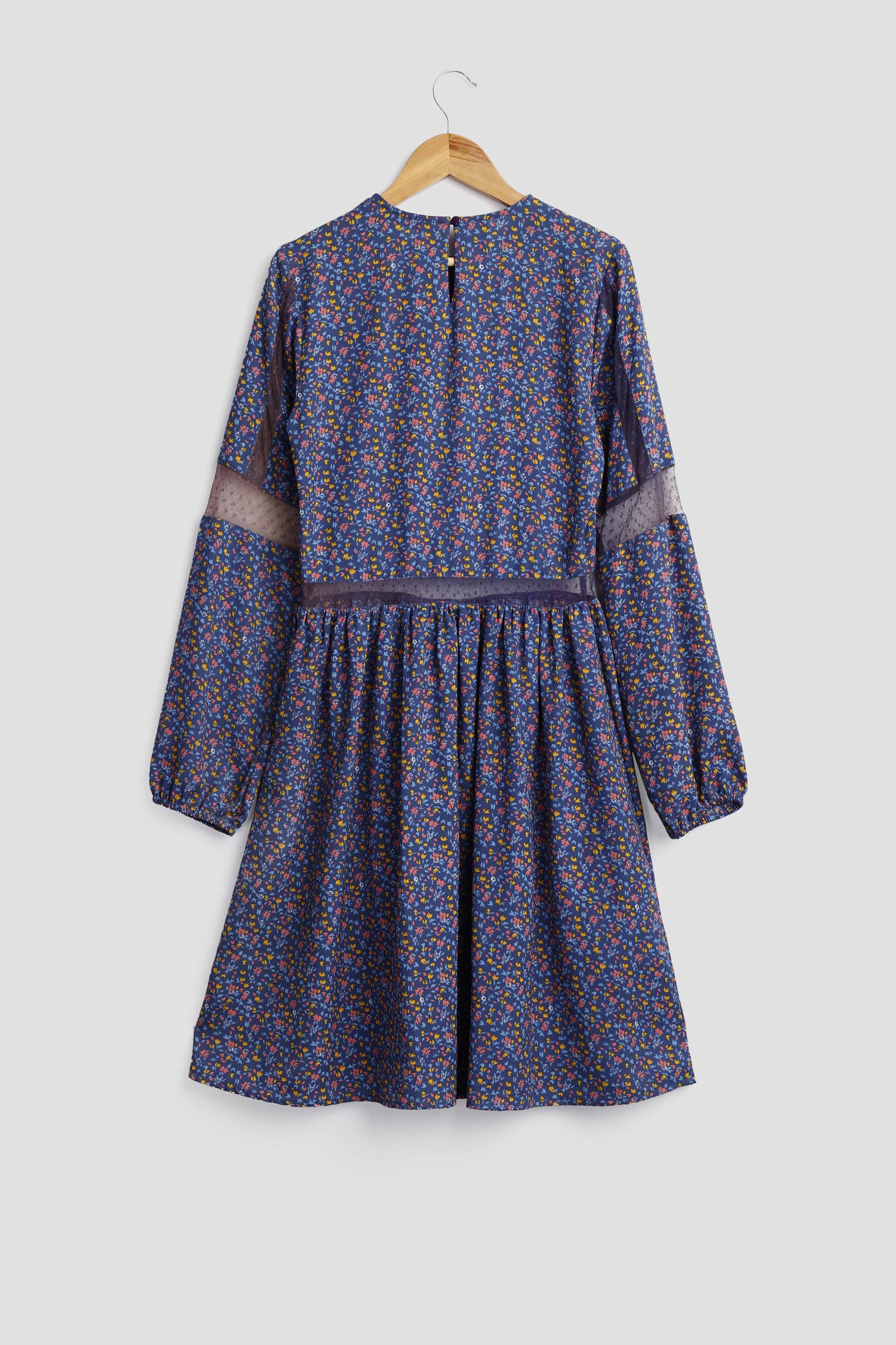 PRINTED DRESS WITH ELASTICATED LONG SLEEVE