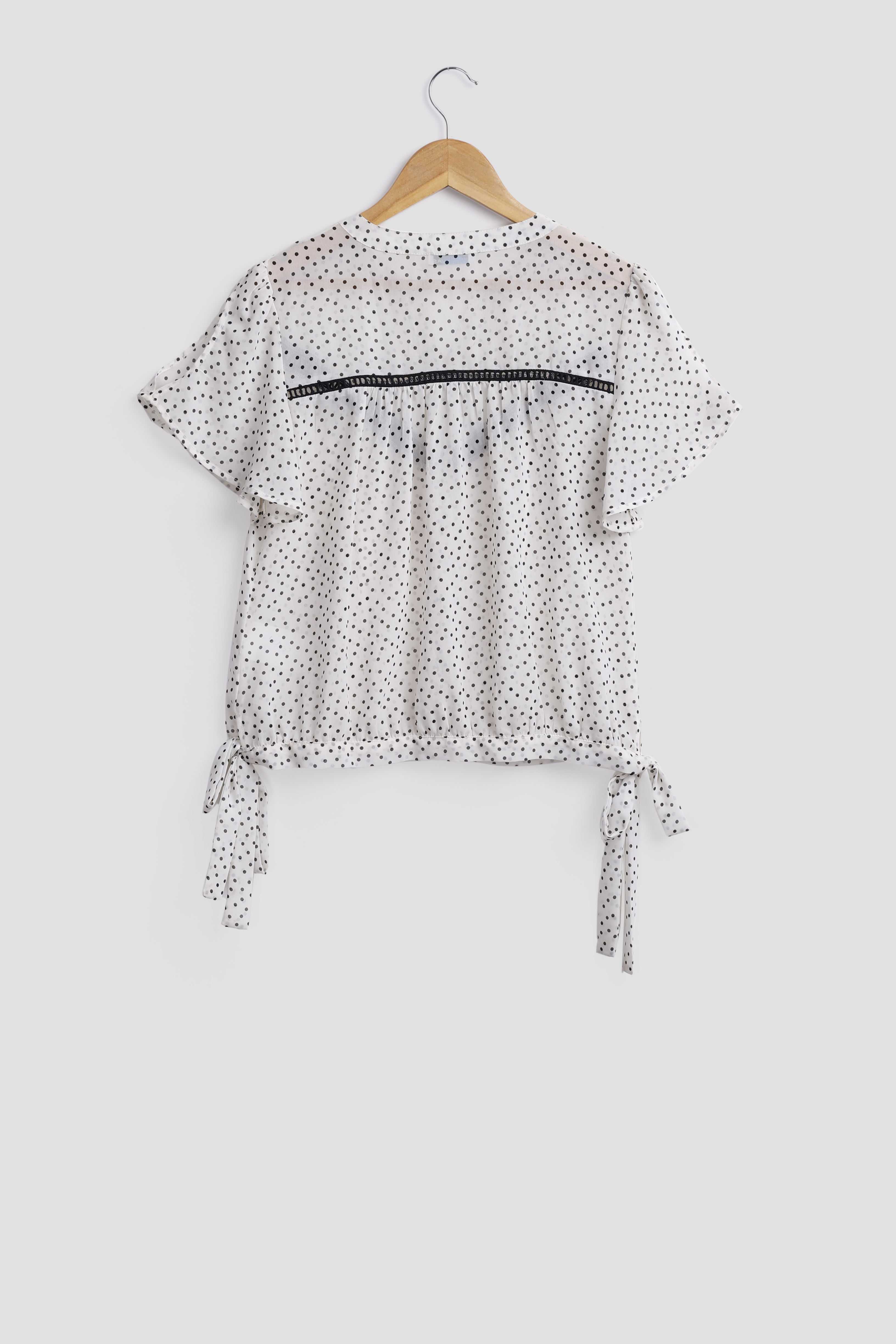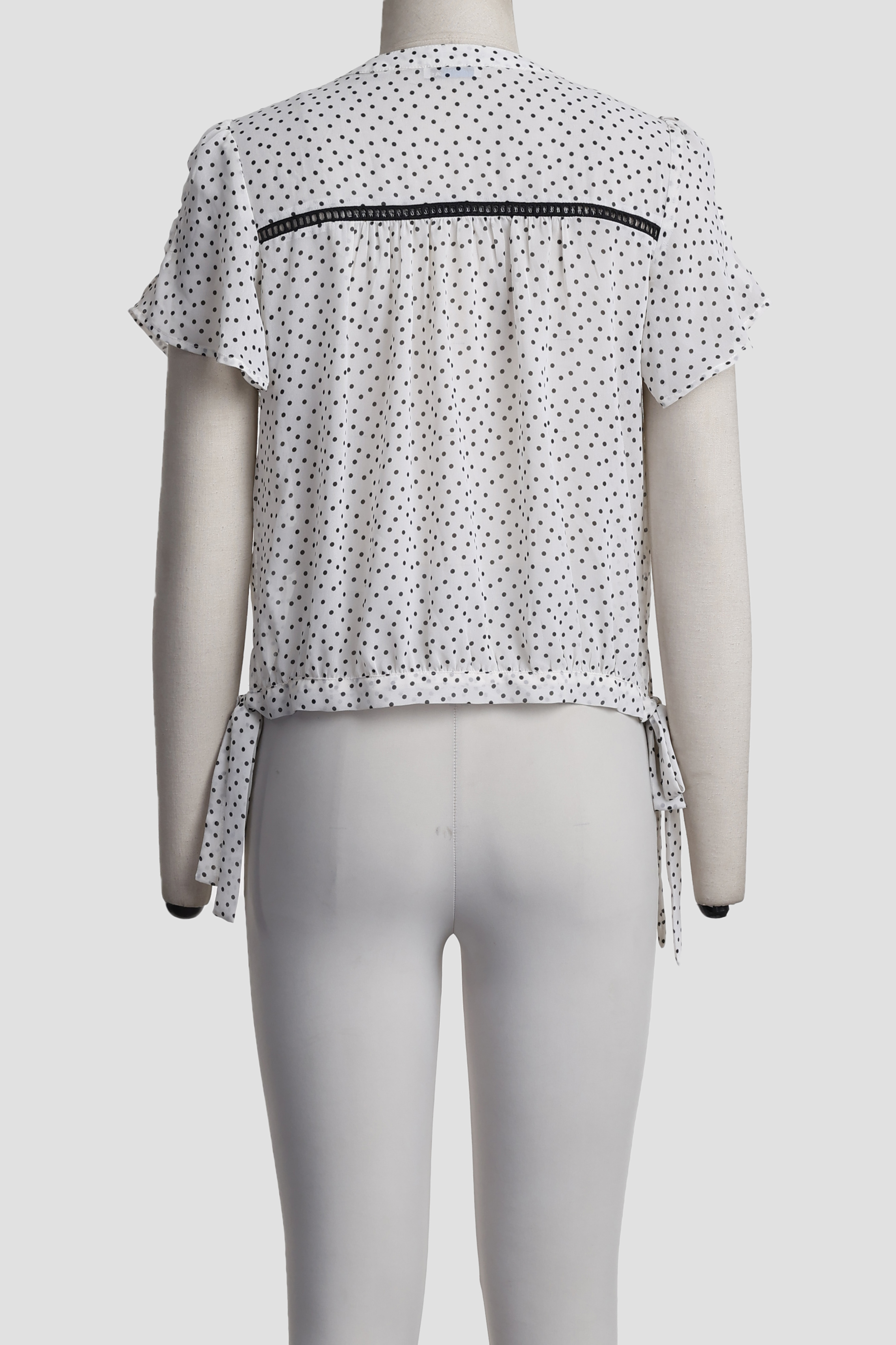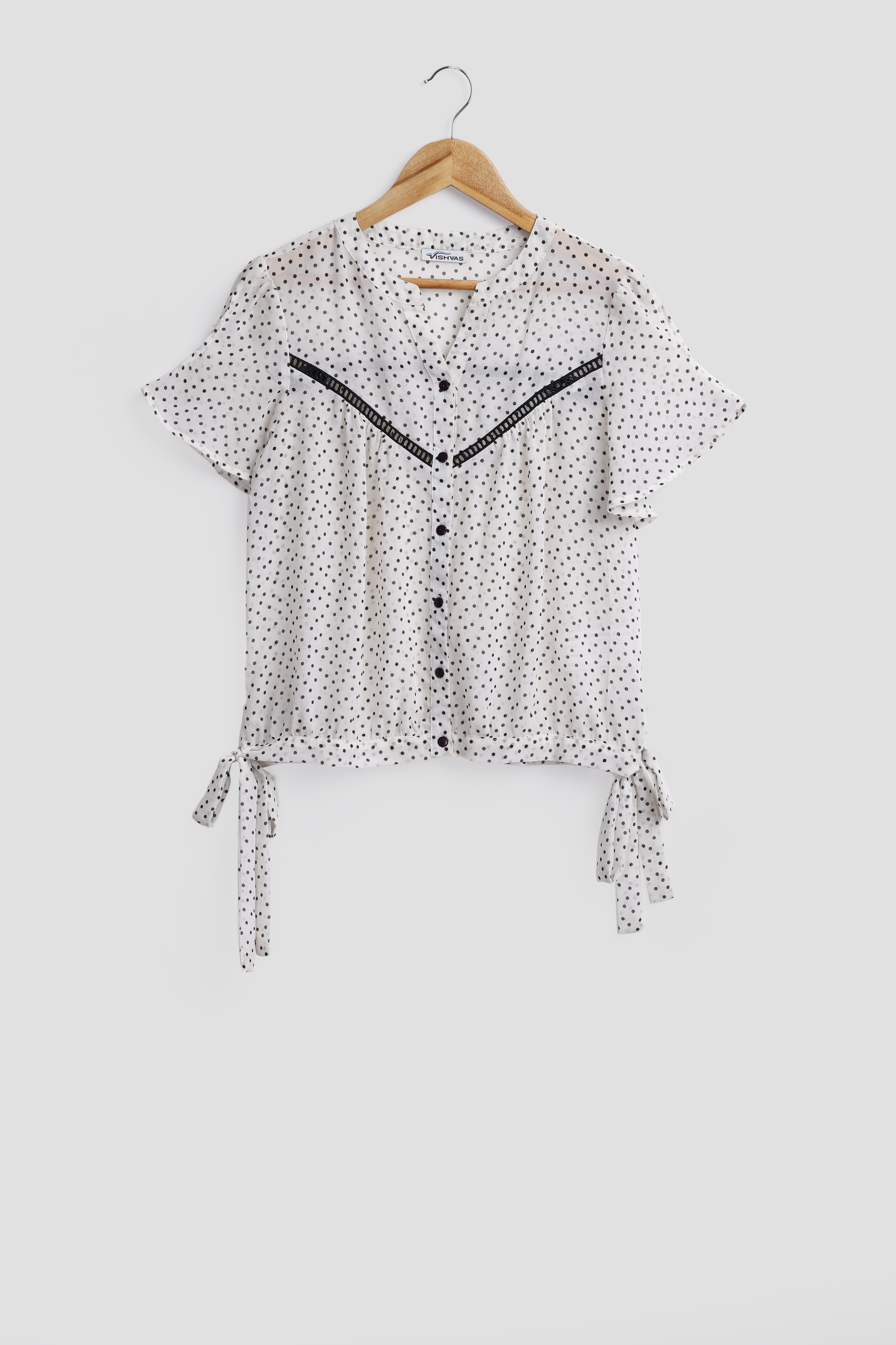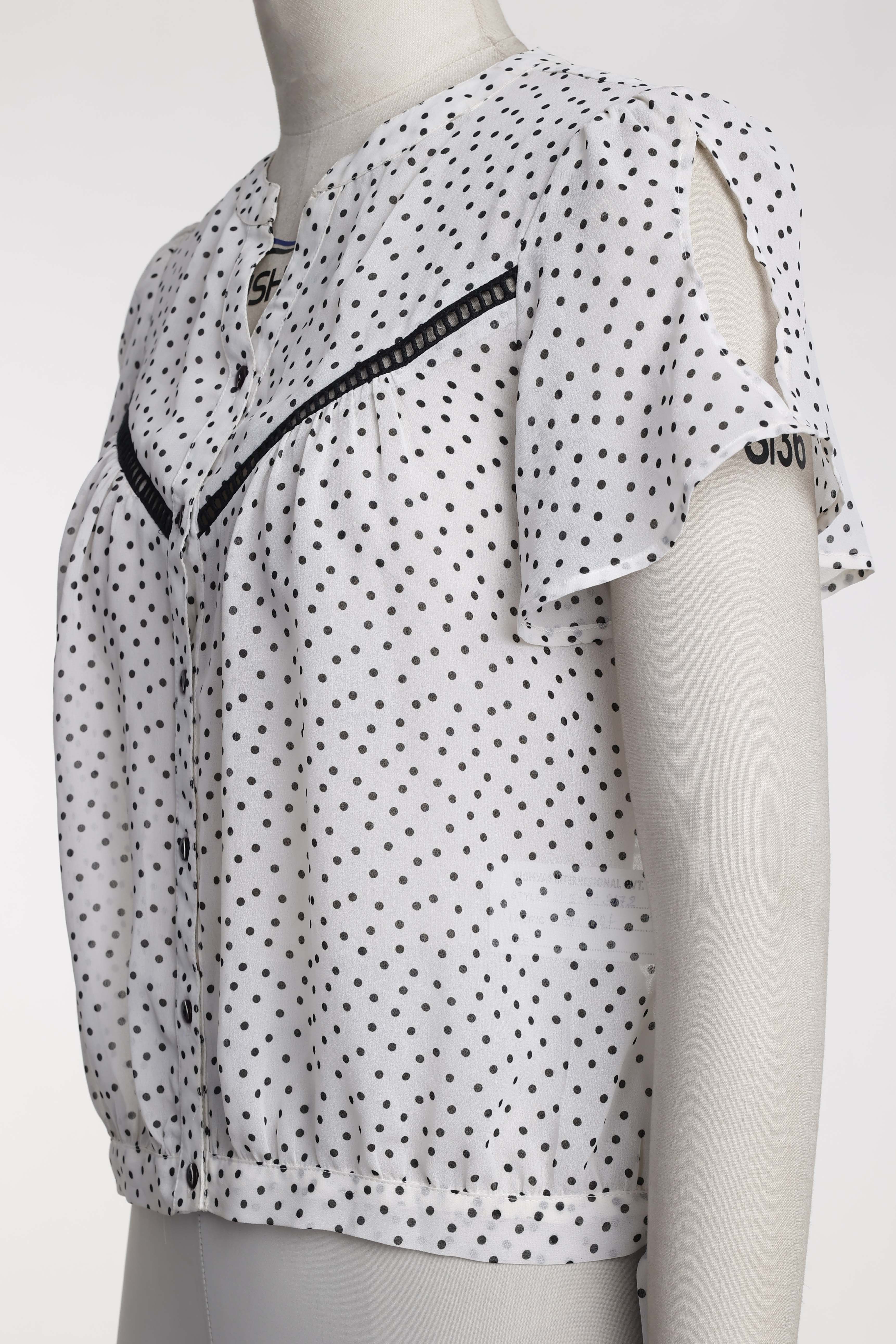 PRINTED LACE BLOUSE WITH V NECKLINE AND SHORT SLEEVE